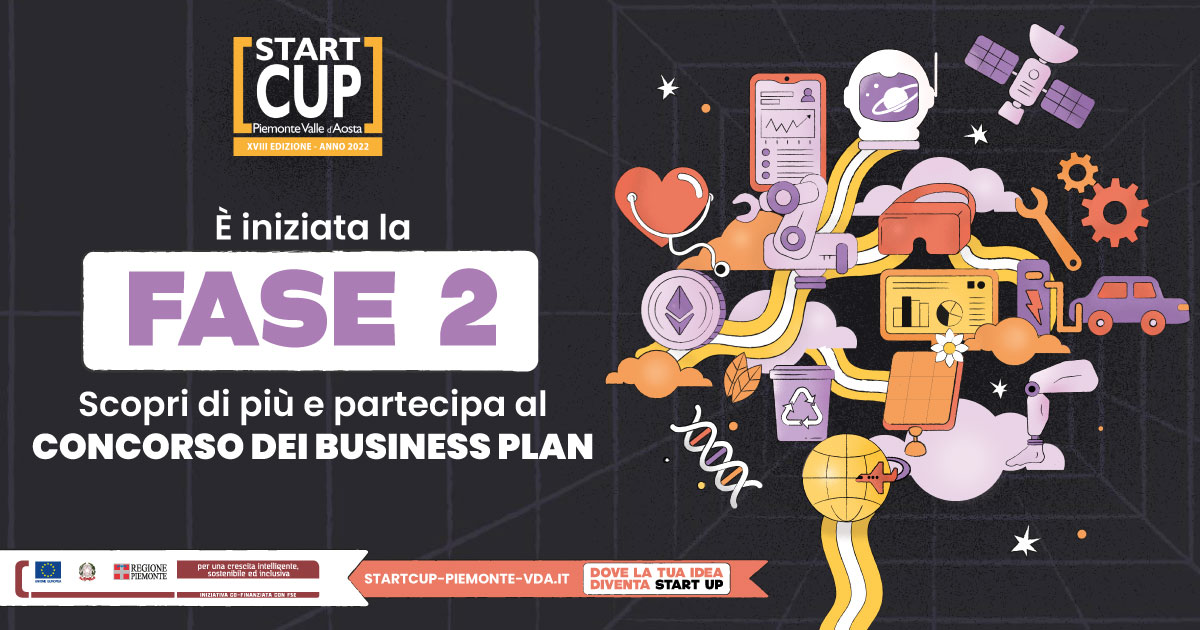 La 18° edizione di Start Cup Piemonte Valle d'Aosta è entrata nel vivo della sua seconda fase, il Concorso dei Business Plan, e mette in palio un montepremi da oltre 60.000 euro per gli aspiranti imprenditori che presenteranno i migliori progetti d'impresa entro il 27 luglio 2022.